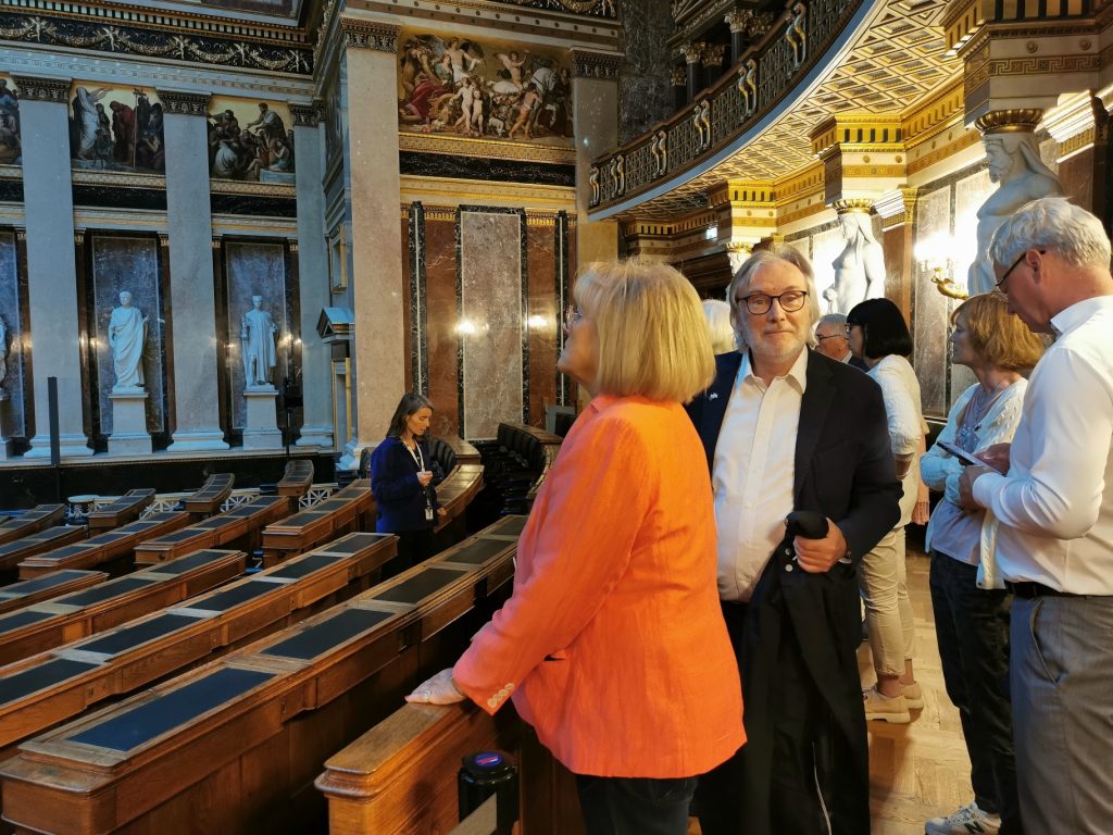 Im Anschluss an die Vorstandssitzung fand am 25. September 2023 die Führung für unsere Mitglieder im neu renovierten Parlament statt. Danke an unser Vorstandsmitglied Alice Alsch-Harant, die den Besuch koordiniert hat. Es haben über 30 Personen an der Veranstaltung teilgenommen. Die Begrüßung erfolgte durch Frau Bundesratspräsidentin Claudia Arpa. Im Anschluss an die Führung wurden die Teilnehmer:innen im Restaurant Kelsen mit kleinen Snacks verköstigt.